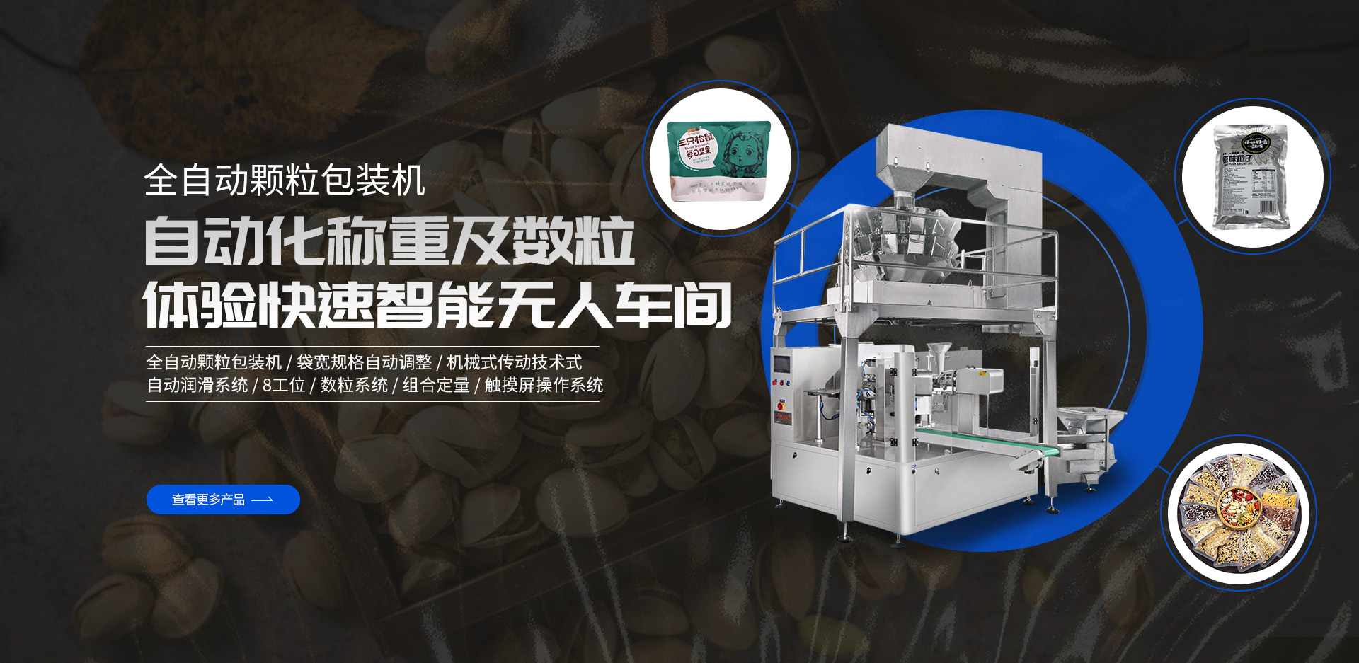 以上多種不同功能的包裝生產(chǎn)線設(shè)備(粉末包裝機、給袋式包裝機、全自動包裝機、顆粒|液體|食品|醬腌菜包裝機),請根據(jù)需求選擇,如有疑問請聯(lián)系我們的顧問